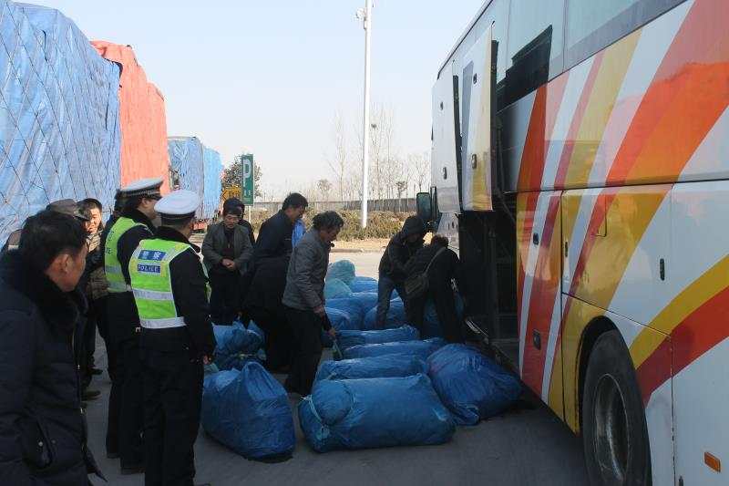 春运第二天,河南高速交警在高速服务区检查一辆营运客车时,发现客车走廊内及乘客的腿上到处都是行李,行李厢放什么用了?