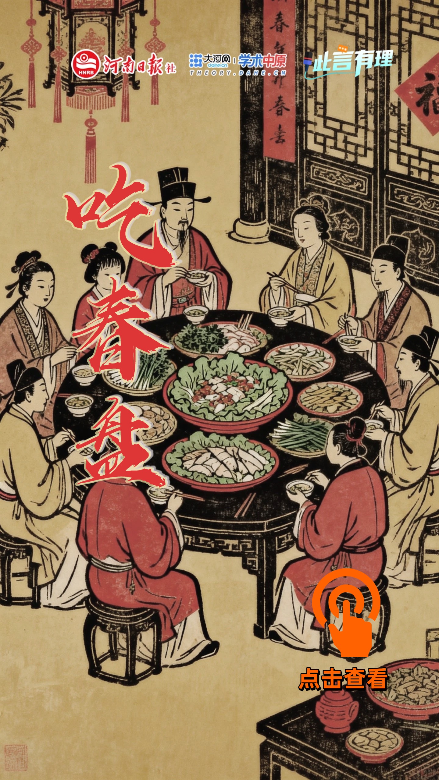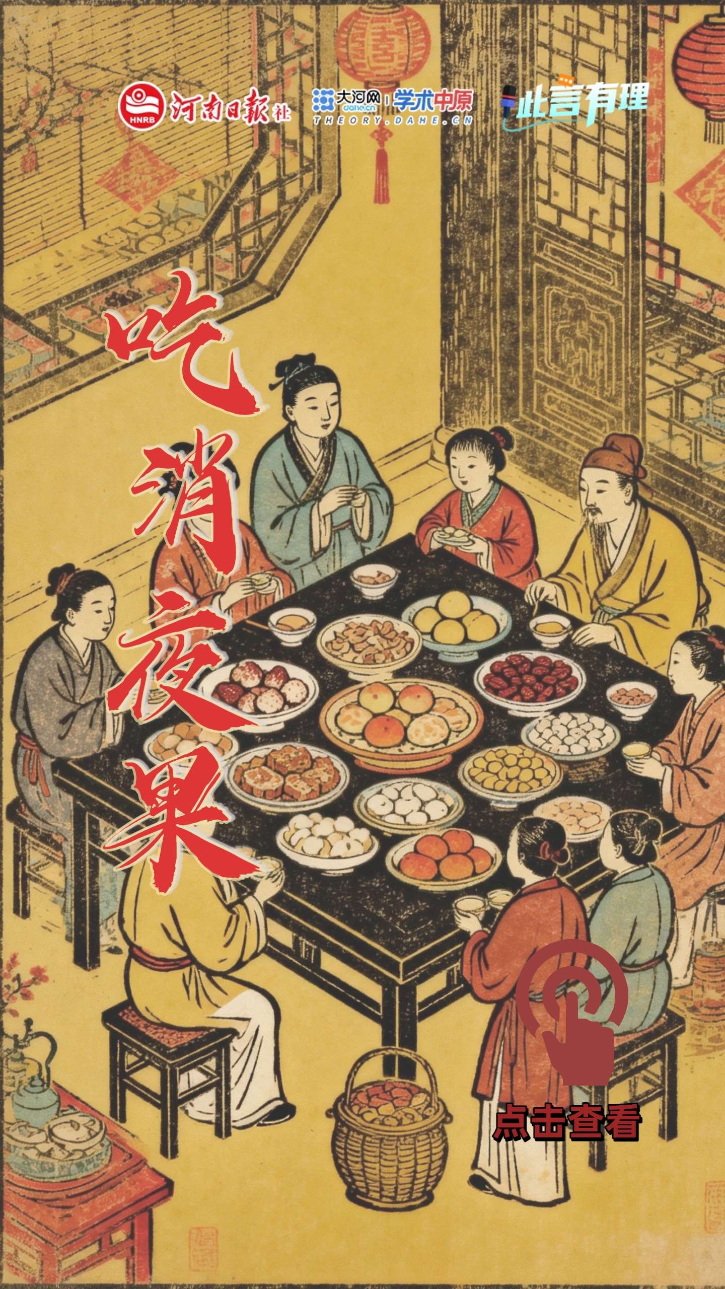 策划:大河网学术中原海报:付婷执行/文案:刘宣宣、付婷学术指导:武亚南,华北水利水电大学注:吃春盘、吃消夜果图片和动图由ai生成,其他动图以古画为基础由ai生成。古画参考:冬景人物图轴·颜峄岁朝图轴·明·盛懋烨岁朝村庆图轴·明·李士达大傩图轴·南宋·佚名丰年家庆图轴·明·佚名,等。